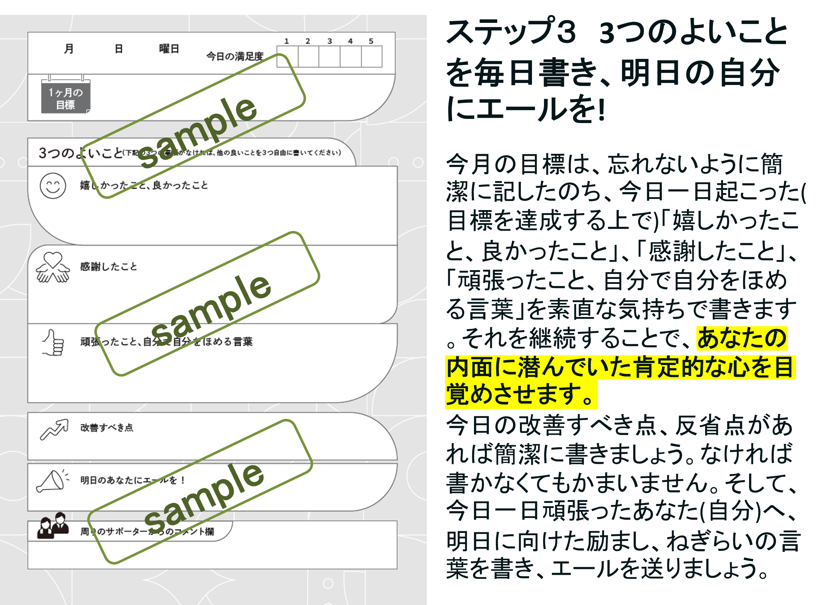 ステップ3 3つのよいことを毎日書き、明日の自分にエールを!